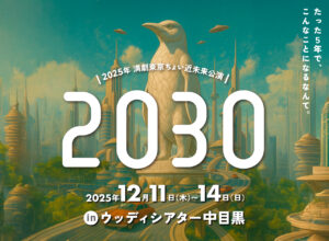 満劇2年ぶりの東京公演です。2025年 満劇東京ちょい近未来公演「2030」。2025年12月12/11(木)~12/14(日)、東京・ウッディシアター中目黒にて。